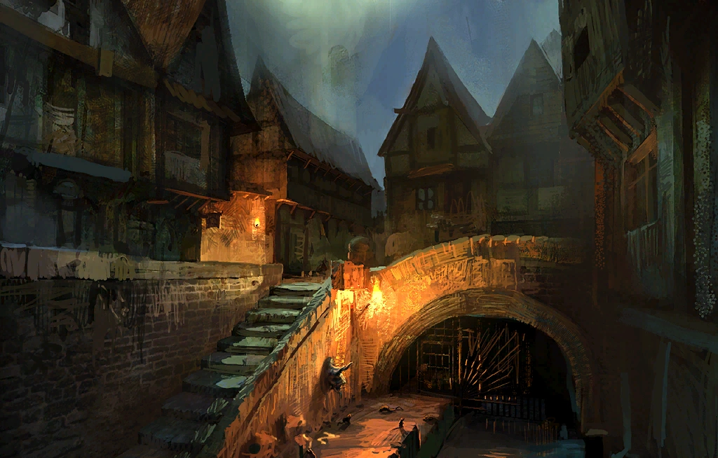 Temple Quarter at night concept painting