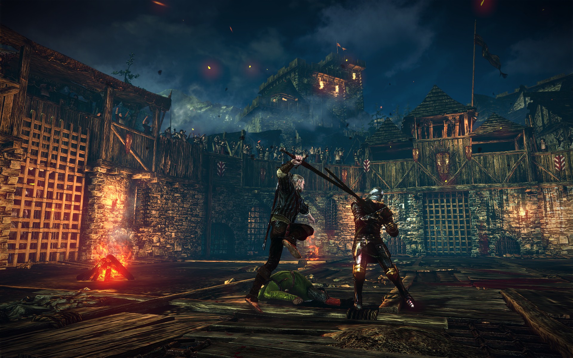The Arena is a new gameplay mode that is separate from the main adventure and narrative of The Witcher 2: Assassins of Kings, added to the game with patch 2.0. In this mode, Geralt duels a variety of foes to the death in a gladiatorial arena located in an unnamed town somewhere in the Northern Kingdoms. In addition to winning gold and valuable items, players also receive points for their wins. They can then post their point totals online to compare their achievements against others. Geralt can recruit allies for a fee to assist him during his most challenging clashes.